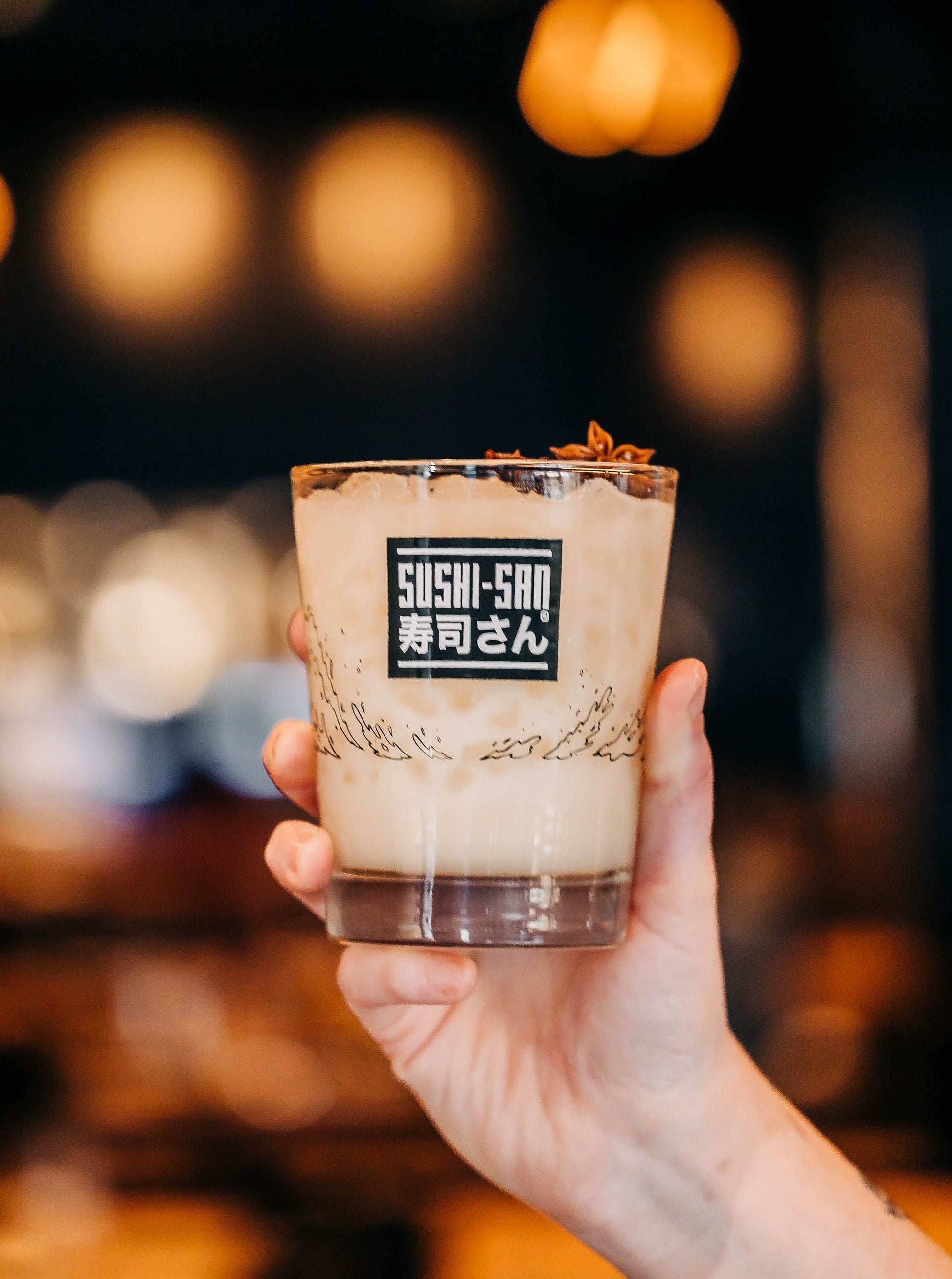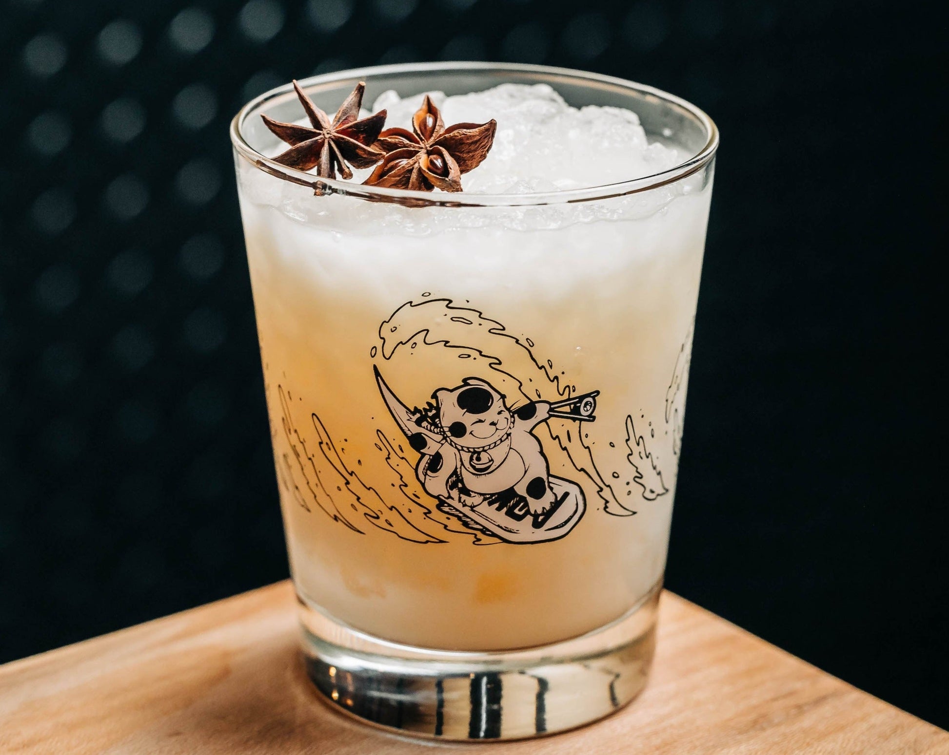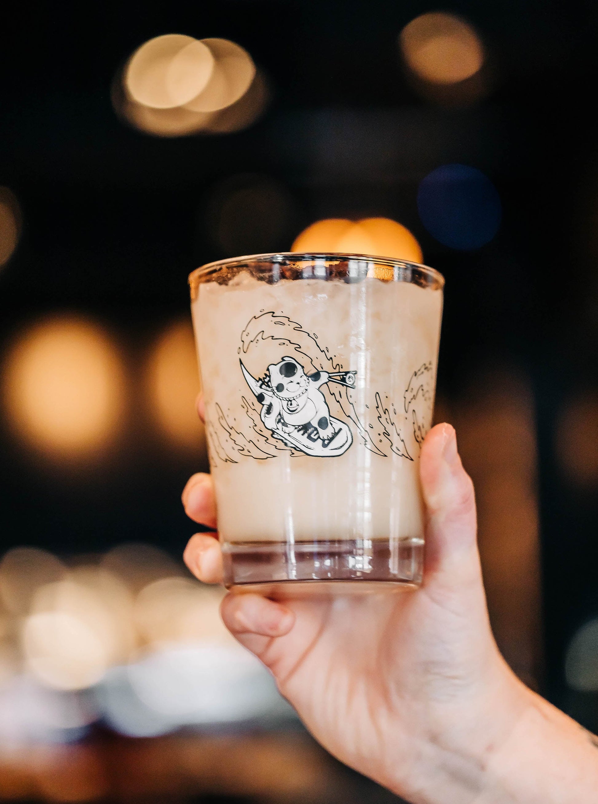 Slurp's up! Embellished with a surfing maneki neko, or "lucky cat," our Sushi-san branded Mai Tai glass will hold 15 oz of your favorite beverage, tiki or otherwise.