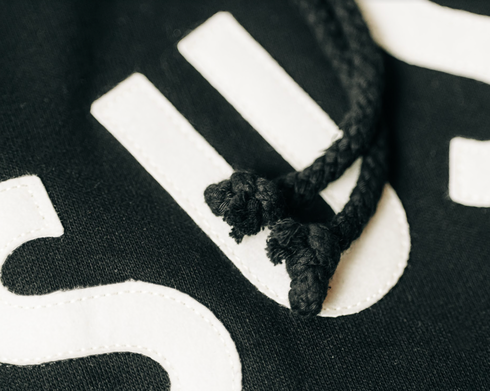 A mid-weight cotton blend that offers everyday versatility. Featuring stitched felt lettering and a drawstring hood.